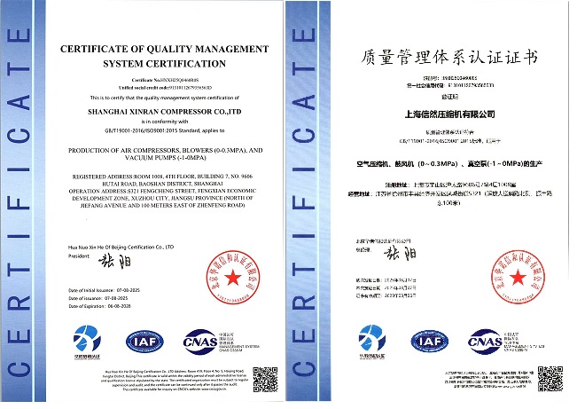 - 信然壓縮機質(zhì)量管理體系(ISO 9001)是企業(yè)發(fā)展壯大的基礎(chǔ),核心是通過規(guī)范流程穩(wěn)定服務(wù)質(zhì)量,追求零缺陷目標,體現(xiàn)對客戶負責(zé)的形象。