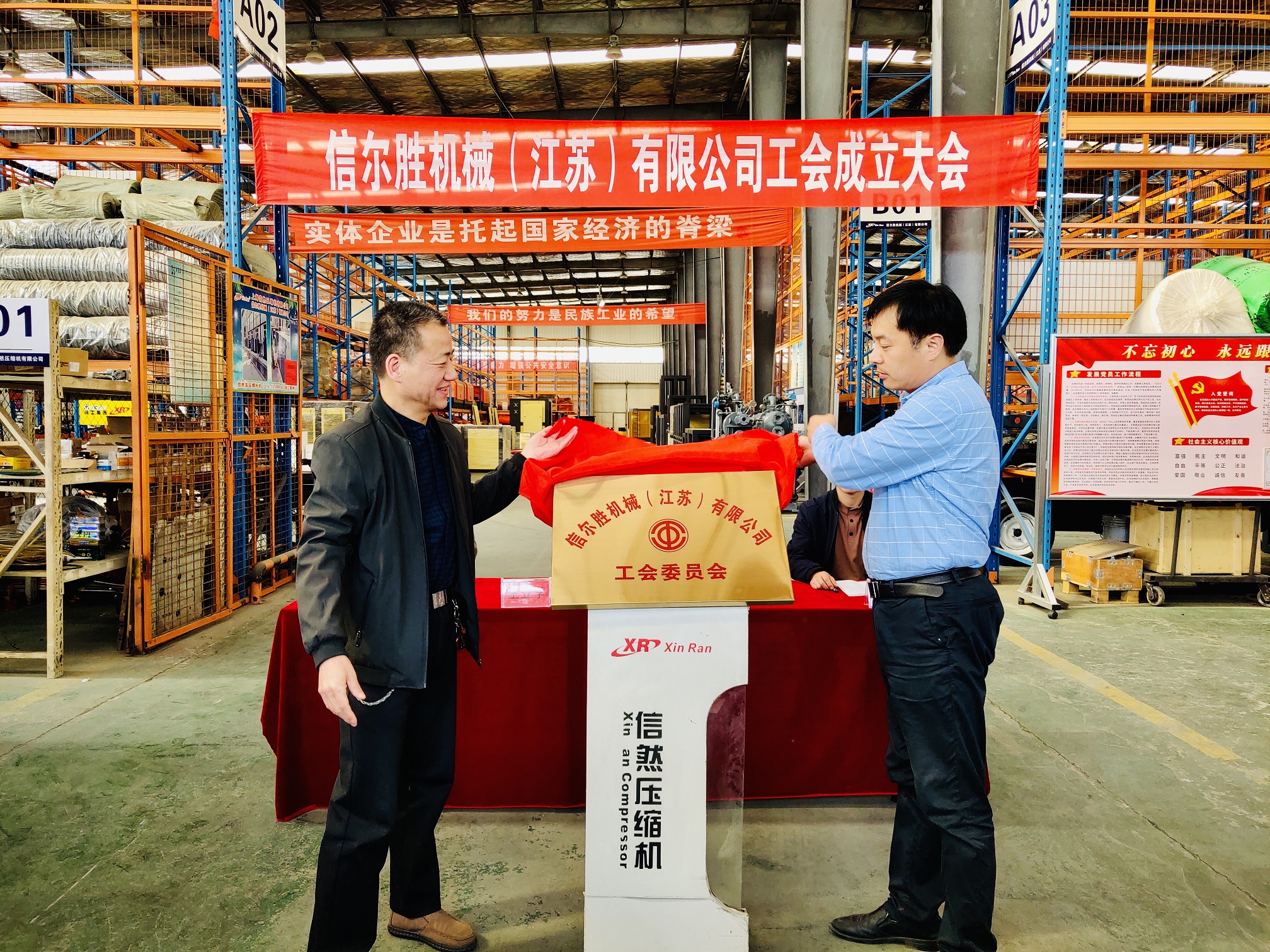 縣總工會王立學同志和信爾勝機械總經(jīng)理卜慶團同志為工會揭牌