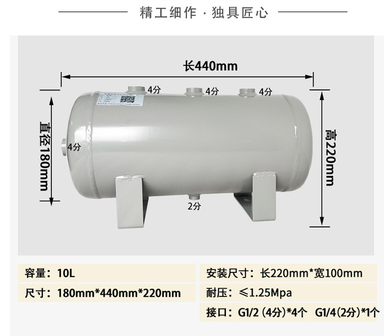 1、儲氣罐的容積大小應(yīng)以壓縮機排氣量的10%--20%之間,我們一般選擇15%,當用氣量較大時,儲氣罐的容積應(yīng)適當?shù)募哟?,如果現(xiàn)場用氣量較小時,可低于15%,不要低于10%。