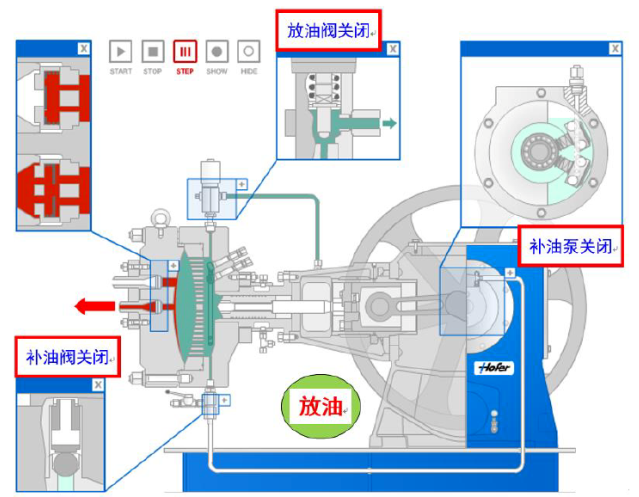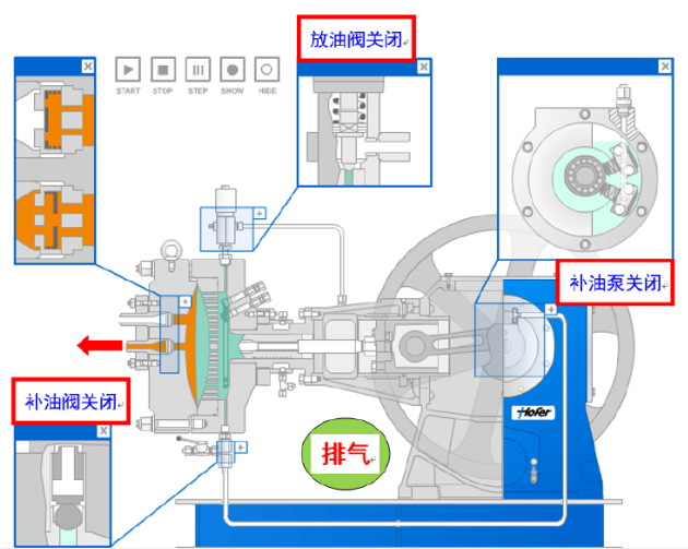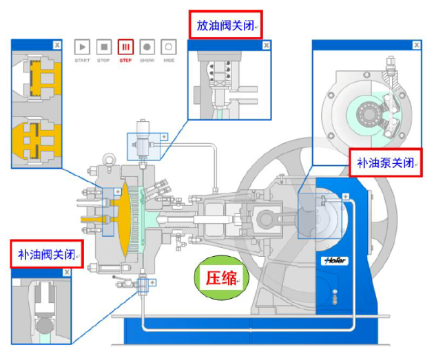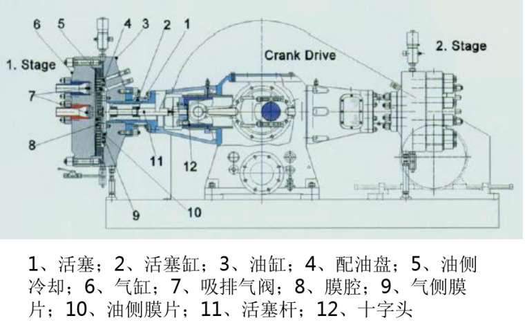 液壓活塞(活塞桿)安裝到十字頭上。活塞通過(guò)活塞環(huán)密封并在液壓缸中往復(fù)運(yùn)動(dòng)。活塞的每次運(yùn)動(dòng)產(chǎn)生一個(gè)固定容積的潤(rùn)滑油量,并由此帶動(dòng)膜片往復(fù)運(yùn)動(dòng)。潤(rùn)滑油作用在膜片上,因此實(shí)際上是膜片壓縮氣體。