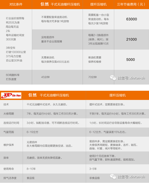 信然水泥罐車車載無油螺桿空壓機(jī)優(yōu)勢: