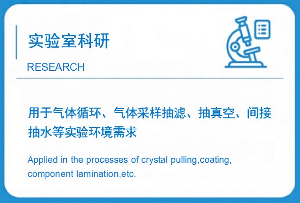 六、實(shí)驗(yàn)室科研RESEARCH用于氣體循環(huán)、氣體采樣抽濾、抽真空、間接抽水等實(shí)驗(yàn)環(huán)境需求Applied in the processes of crystal pulling,coating, component lamination,etc.